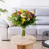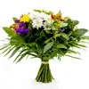 Si vols sorprendre la mare amb un regal que la faci sentir especial al seu dia, el nostre ram de flors primaveral és la tria perfecta. Aquest impressionant arranjament inclou una bella rosa vermella, 7 vibrants gerberes, margarides variades, 4 solidagos, 3 clavellinas i mig pom de statice per a un toc dolç. Una explosió de color i alegria!