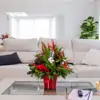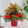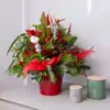 ¡Celebra la temporada con nuestro encantador Centro de Navidad! Con exquisita flor de algodón, vibrante ílex y fragante eucalipto, este arreglo festivo, realzado con toques de gravilea, captura la esencia alegre de la Navidad. Presentado en una elegante cerámica roja, es la elección perfecta para agregar un toque jovial a tu hogar. ¡Haz que esta Navidad sea aún más especial con la frescura y la alegría de nuestras flores!