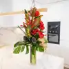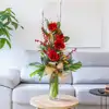 La flor de amarilis, con sus pétalos elegantes y vibrantes, es la protagonista de este exclusivo arreglo navideño. Combinada con hojas verdes, piñas y los toques festivos de bayas rojas, crea una atmósfera cálida y refinada para cualquier espacio. Este diseño único es perfecto para dar un toque de lujo y naturaleza a tu hogar o como un regalo lleno de sofisticación en estas fiestas. Dale un toque de distinción a tu Navidad con nuestro Arreglo Elegancia Radiante. ¡Solo por tiempo limitado!