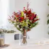 ¿Necesitas un regalo para esta Navidad? Ilumina el rostro de tu ser querido con nuestro deslumbrante Brillo Festivo. Este ramo colorido es cuidadosamente diseñado para añadir alegría a tu celebración navideña.La bonita combinación del encanto bouquet de verdes tintados como luces festivas, la majestuosa vara de ilex grande como el símbolo de la temporada y la autenticidad del quercus que añaden un estilo rústico y natural. El pomo de crivillea agrega elegancia, mientras que los verdes variados completan la composición con una mezcla armoniosa de tonos y texturas.Con el Ramo Brillo Festivo, tu persona favorita quedará encantada con el espíritu navideño. ¡Haz que su Navidad brille con este deslumbrante ramo! (jarrón no incluido)