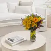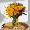 Pequeño en tamaño, pero grande en encanto. Este mini jarrón otoñal reúne flores de tonos cálidos como margaritas doradas, gerberas anaranjadas y toques rojizos que evocan los colores más vibrantes de la estación. Una composición compacta, alegre y luminosa, ideal para escritorios, mesitas auxiliares o detalles llenos de cariño.El detalle perfecto para decir “estoy pensando en ti” esta temporada.