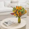 Este ramo variado de flores otoñales es pura celebración de la estación. Con margaritas anaranjadas, rosas color calabaza y una mezcla de hojas rojizas y verdes, transmite esa sensación acogedora de mantas, café caliente y paisajes dorados. Cada detalle ha sido pensado para equilibrar color, volumen y textura en una composición que enamora.Un ramo lleno de vida, ideal para decorar en otoño o regalar con un mensaje cálido.