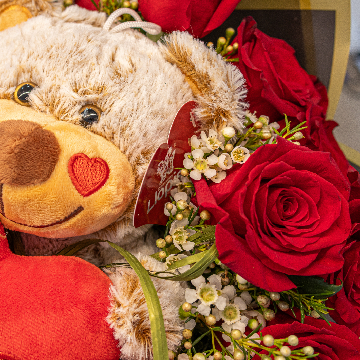 Precioso y emotivo ramo de flor variada de temporada con peluche.Un de...
