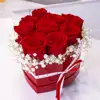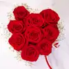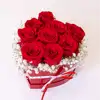 Expresa todo tu amor con esta elegante y sofisticada caja en forma de corazón, llena de vibrantes rosas rojas frescas, símbolo eterno de la pasión y el amor. Decorada con delicada paniculata blanca, añade un toque romántico y delicado que convierte este arreglo en el regalo perfecto para San Valentín.