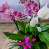 Este grupo de plantas es una obra de arte viviente, diseñada para cautivar y asombrar. En una elegante base de cerámica, el exótico spatiphyllum, las encantadoras tilandsias y la elegante orquídea se combinan para crear un regalo que encarna la belleza y la sofisticación, perfecto para expresar amor. *** la base de la composición puede ser distinta a la de la fotografía