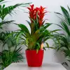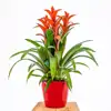 Precioso jarrón de cerámica con 3 guzmanias, una planta de interior muy fuerte y con gran colorido. Fácil de cuidar. Ideal para decorar tu salón