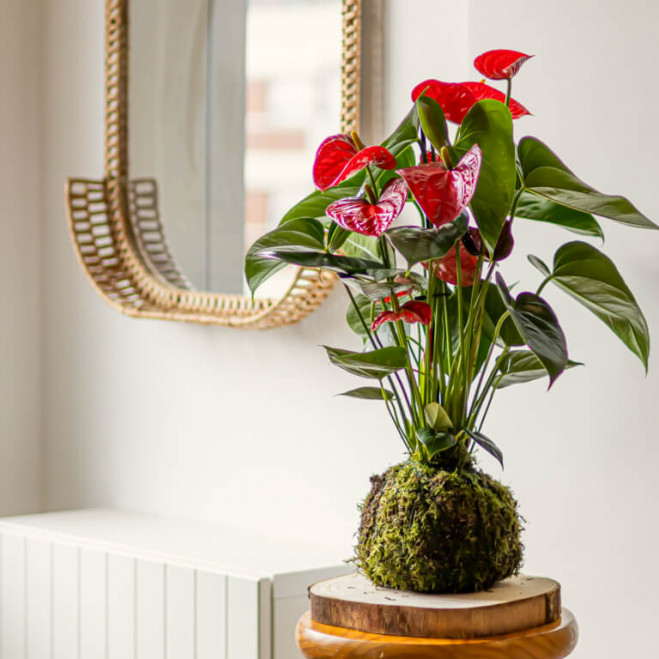 El anthurium en tarrina es pura expresión tropical: hojas brillantes y...
