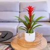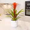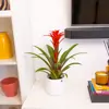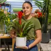 Plantas que producen brácteas de intenso colorido que duran hasta dos meses. (Tiesto no incluido) La Guzmania es la Bromélia con la flor más llamativa de toda las Bromaliáceas. Originaria de zonas tropicales de América, bosque húmedos de la India y de Sudamérica. Hojas verdes que se disponen en roseta y que presentan el característico depósito de agua como en la gran mayoría de las Bromélias. Sus inflorescencias aparecen en forma vertical y que pueden ser de muchos colores según la variedad, desde rojos, anaranjados, lilas, amarillos etc...Este tallo central presenta unas brácteas que entre ellas aparece la verdadera flor, que de por sí son insignificantes. Pasada la floración, el tallo central y la roseta de hojas tienden a desaparecer para dar paso a los hijos que serán los que darán floraciones nuevamente.